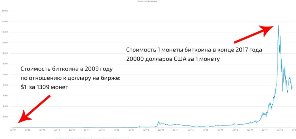 Биткоин в 2009 году стоил $0.001, в 2017 курс биткоина доходил до 20000$ за 1 монету
