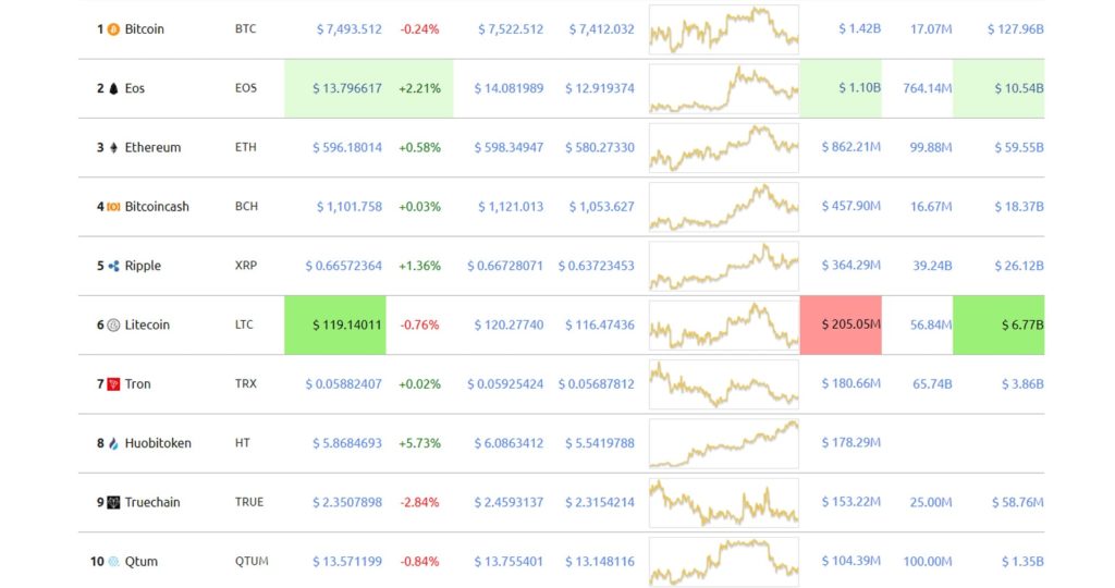 Поскольку большая часть этих монет имеет низкую популярность и не представляет большого интереса, мы приведем рейтинг самых капитализированных криптовалют:
